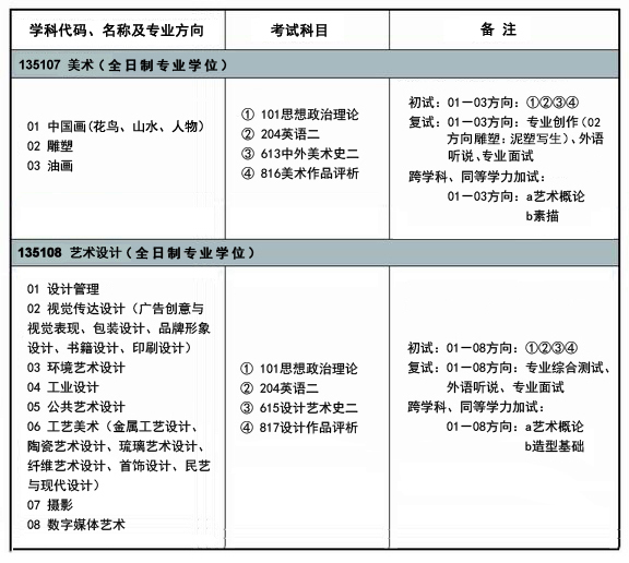 《设计艺术学概论》,唐家路等编著,清华大学出版社,2013年版。二、全日制艺术硕士专业学位研究生(MFA)招生专业目录和初试参考书目