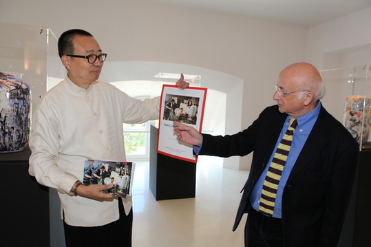 潘鲁生与策展人温琴佐·桑弗在展览现场。