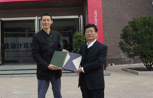 会议伊始,副院长张云龙对两位校友的到来表示了热烈的欢迎,并对两位校友进行了简单的介绍。随后,肖勇先生与潘广田先生分别发表了精彩的报告。肖勇现为中央美术学院设计学教授,国际品牌设计联合会副主席,国际艺术设计院校联盟理事。此次报告,肖勇主要从其求学之路、如何热爱设计以及热爱教学等等方面进行讲述,讲述了他从济南—北京—莫斯科—赫尔辛基的精彩历程,使在场每一位都受益匪浅,为其深深折服。他在发言中指出:“我们要接受好的教育,主动学习;要获取经验,接受职业化培训;态度决定了一切,心态决定了状态,细节决定成败。”随后,肖勇向大家展示了他所参与的奥运案例、产品案例、品牌案例,激发了同学们斗志和热情。报告之后,肖勇向母校捐赠了亲笔签名的书籍,副院长张云龙代表学校接受了捐赠,并感谢校友。
