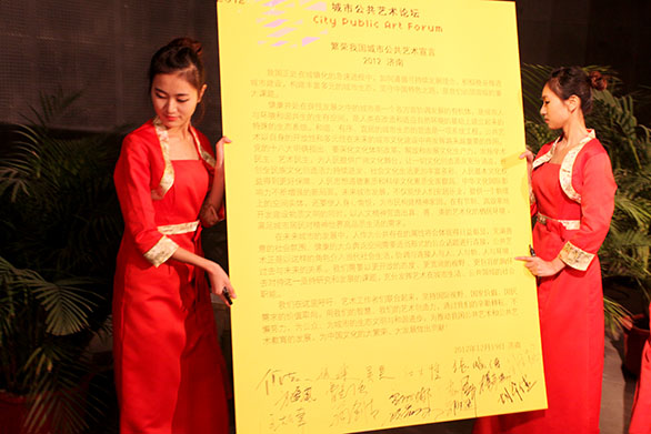 与会专家在《繁荣我国城市公共艺术宣言》上签名