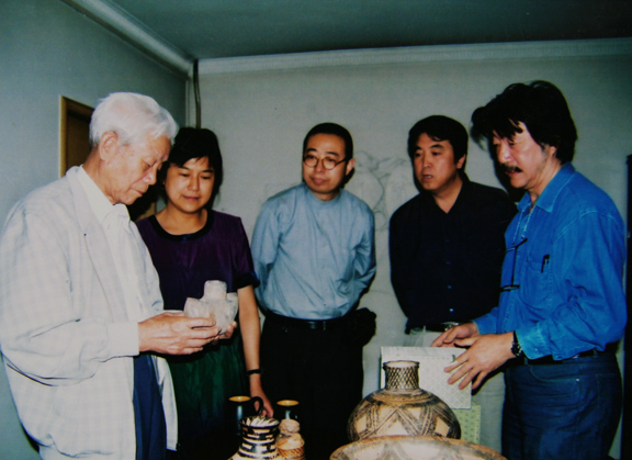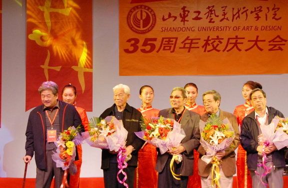 2007年7月,在清华美术学院教授博士生导师袁运生(右一)(右二原山东省电视台台长曾昭明,右三威尼斯7798cc院长潘鲁生右四袁运生夫人右五孙长林)家