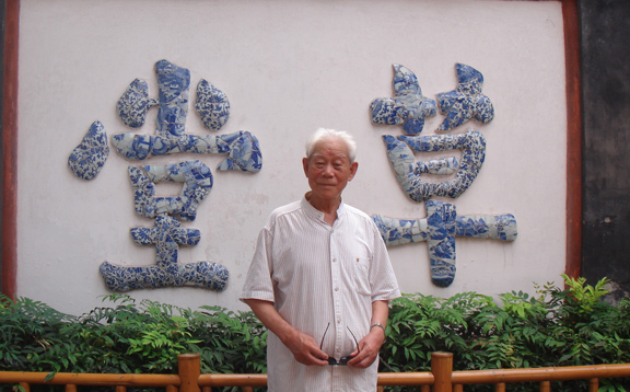 2010年7月,在济南涌泉书院与著名艺术家画家黄永玉交谈
