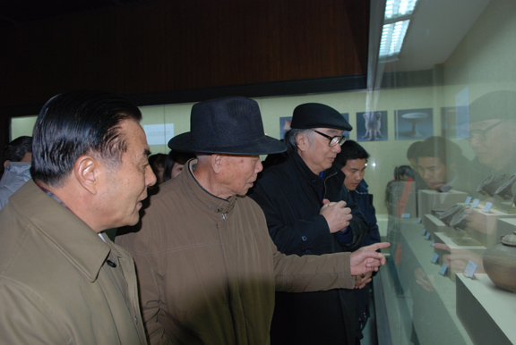 2007年12月,孙长林与教育部评估中心主任刘凤泰、清华大学美术学院教授杨永善参观孙长林艺术馆