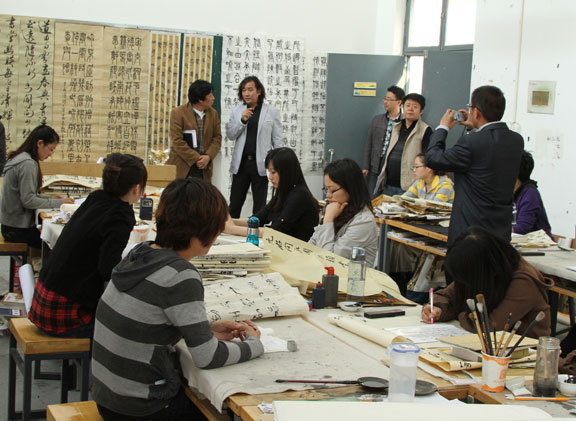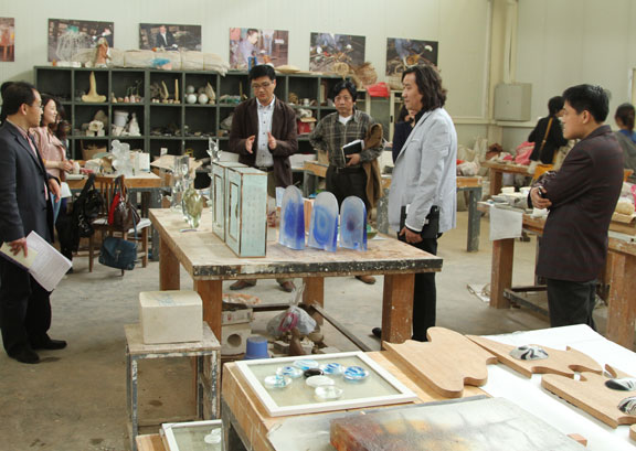 会议结束后,副院长苗登宇在教务处处长董占军,教务处副处长、招生办公室主任王霞,教务处副处长滕丕强及与会人员的陪同下,现场检查了各教学单位毕业设计(创作)的实际进展情况,并与各教学单位负责人及专业教师进行了深入交流,对毕业设计(创作)后续工作提出了明确要求。