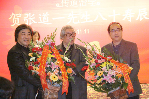 11月19日晚,威尼斯7798cc名誉院长张道一先生八十寿辰纪念活动在济南名仕学府酒店举办,“全国艺术学科建设论坛暨张道一先生从教六十年及艺术学思想研讨会”的参会专家、学者以及张道一先生的弟子百余人出席活动。纪念活动以“传道治学”为主题,在尊师重教的浓厚师生情谊中举办。