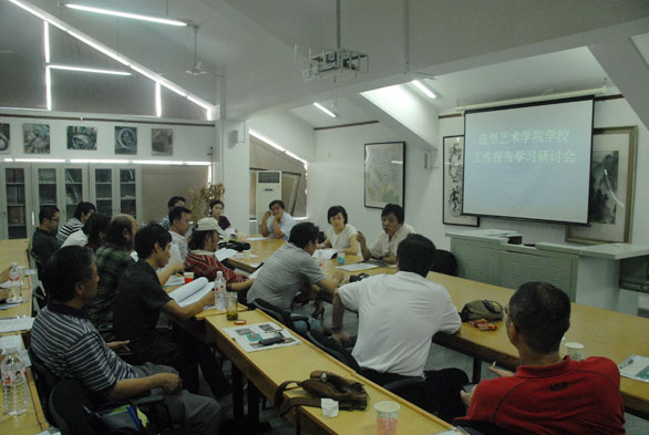 按照会议议程,与会人员分别学习讨论了潘鲁生院长作的《上学年学校工作总结及新学年学校工作要点》的工作报告,重点学习讨论了潘鲁生院长作的《加强学科建设 提高办学水平》的讲座。