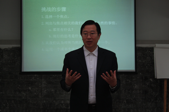 吴亚滨先生是德博诺中国区的首席培训师,德博诺课程中国区的导入者、执行者和推动者之一。这次他带来的CORT工具是专门针对设计教育领域研发的思维训练课程。CORT思维工具分为6个模块,每个模块由10个单元构成,是目前世界上最为完善的思维训练系统课程。29日,工作坊成员分团队集中训练了三个创新思维工具:挑战(Challenge)、随机输入(Random & Entry)、刺激和运动(Provocation & Movement)。30日,工作坊成员运用德博诺中国与索麒咨询管理公司合作开发的“设计系统整合管理”工具,围绕“某品牌签字笔整体策划”这一创新任务,从“签字笔”的设计分析到上市整个设计流程进行了实战演练。将项目管理、产品设计、包装设计、广告设计、促销设计等设计资源进行系统整合管理,简化了流程之间的沟通环节,建立起顺畅的工作方法,进而提高了创意水准和设计效率。德博诺思维训练工具重新建立起大家对思维创新及设计系统的认识,受到了工作坊成员的一致推崇。