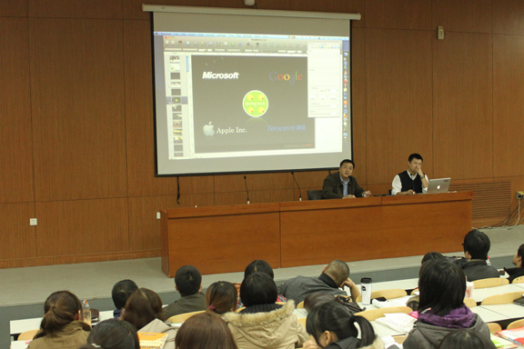 彦风老师首先向同学们介绍了中央美术学院设计学院数码媒体工作室的相关情况,并通过工作室近年承担的包括与Google、Apple、腾讯等著名公司合作的项目,生动详实地展示了交互设计的艺术魅力,真实的勾画出了该领域的发展前景和未来。