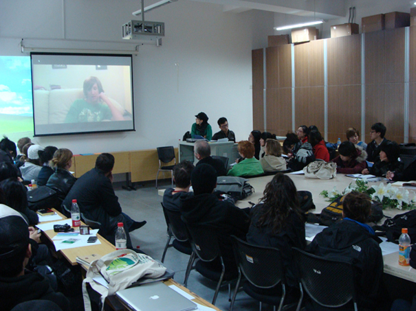 上午9:00,来自中外四所大学的教授及同学纷纷来到综合楼三楼多媒体教室参与交流会,视觉传达设计学院院长石增泉、副院长侯立平以及我院工作坊的各位年轻教师及同学们也积极参加了此次会议。通过前一天的讨论,大家基本上已经对“家与成长”这个课题有了初步的了解和认识并相互交流了看法,在今天的交流会上,来自美国东北大学、马里兰他大学、韦伯州立大学、中央美术学院和我院的同学分别用VCR诠释不同的“家与成长”的内容,向大家展示了对“家和成长”这一课题的理解,其中很多共同思想引起了在座师生的共鸣。