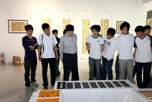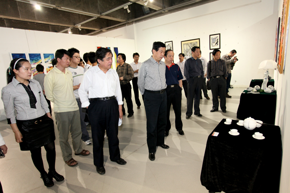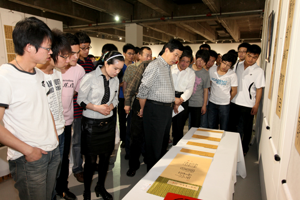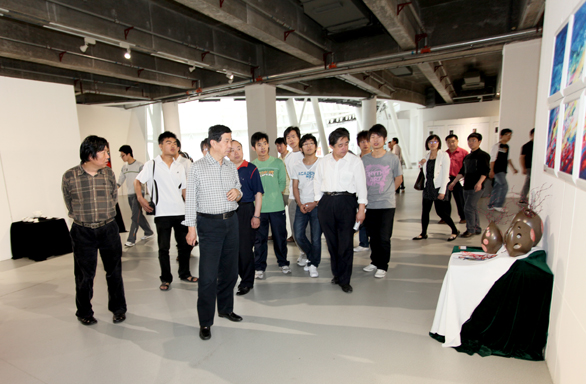 5月10日上午,党委书记于茂阳来到学校美术馆参观正在展出的威尼斯官网2010届毕业生作品展,并与参观师生进行了亲切的交流。