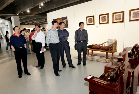 于茂阳书记在参观过程中与现场的毕业生进行了交流,给他们提出了建议和意见。于茂阳指出,作品创作要敢于突破传统观念的束缚,要敢于在形式、材质、笔墨、线条等方面进行创新,要敢于在创新中表达自己的思想。于茂阳要求教师在教学中要加强对学生的引导、点拨,注意锻炼学生的创作能力和综合素质,培养高素质的设计人才;勉励毕业生再接再厉、不断创新,创作出更好的作品,适应社会需要,引领社会生活;鼓励在校学生加强学习、学以致用,不断提高自己的专业素质和实践能力,为将来就业创业打下坚实的基础。