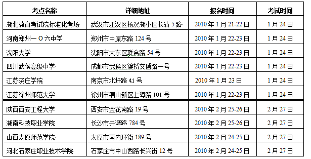 说明:(1)河北、江苏、湖南省教育考试院规定,本省考生必须在本省内考点参加专业考试,在其他省市考点参加考试成绩无效。