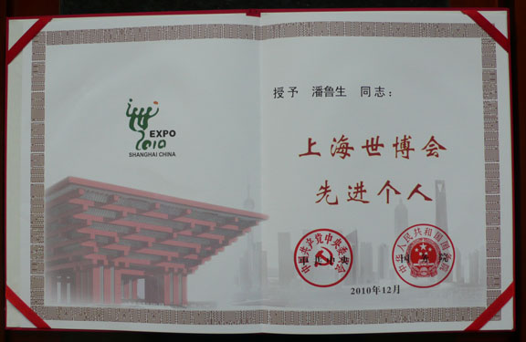 评选工作认为,自启动参展工作到完成撤展回迁,近3年时间里,潘鲁生同志兢兢业业,苦干实干,始终坚守一线岗位,在相关部门领导及配合下,以高度负责的精神、积极主动的态度、科学有效的措施、高水平的专业素养和综合管理能力,统筹推进各项工作,实现山东馆“百姓喜欢,专家认同,政府满意”的参展目标,受到省委省政府充分肯定,赢得群众好评,充分体现了优秀共产党员和专业人才的积极作用,树立了可贵的工作榜样,特给予表彰。