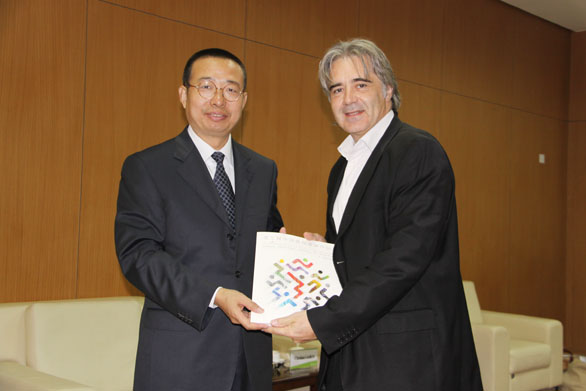 潘鲁生院长还就国际设计艺术院校联盟工作提出建议。他指出,当前的国际设计艺术院校联盟会议主要是校长、教授对设计艺术教育等问题进行探讨,今后国际设计艺术院校联盟应开设大学生交流的项目,以工作坊或其他形式,使不同文化背景和教育背景的学生聚在一起,就一个主题,做出不同语言、不同形式的设计,然后大家进行交流学习,可以使参与项目的大学生都受益。项目还可以邀请世界著名的企业、公司参与。潘鲁生院长还就首届大学生交流项目的举办时间、地点、形式、内容等提出了具体建议。