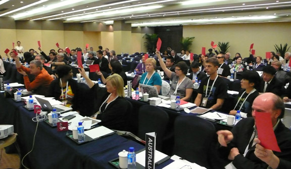 在为期两天的会员大会上,与会代表通过了国际平面设计协会联合会2007-2008年工作报告、财务报告和审计报告。会议对《国际平面设计协会联合会(ICOGRADA)组织章程》进行了补充修改,选举产生了2009-2010年际平面设计协会联合会执行委员会成员。来自澳大利亚的原国际平面设计协会联合会副主席罗塞尔•肯尼迪(Russell Kennedy)当选为2009-2010国际平面设计协会联合会执行主席,中央美术学院教授肖勇当选为联合会执行副主席。新任主席对国际平面设计协会联合会2009-2010年工作进行了展望,并提出了具体的工作方案。