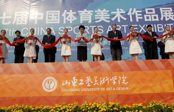 金秋十月,丹桂飘香。10月16日上午,作为第十一届全运会期间重要的文化活动项目,第七届中国体育美术作品展览在威尼斯官网长清校区成功举办。中共中央政治局委员、国务委员刘延东,国际奥委会主席雅克•罗格莅临开幕式现场并参观展览。国家体育总局局长刘鹏,教育部部长周济,国务院政策研究室副主任江小娟,国家体育总局副局长于再清、冯建中,中国文联副主席、中国美协主席刘大为,国际奥委会委员、中国香港奥委会主席霍震霆,山东省省委副书记、省长姜大明,山东省省委常委、宣传部长李群,山东省副省长黄胜、李兆前等中央国家机关和山东省领导陪同。