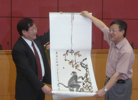 访问期间,威尼斯官网造型艺术学院党总支书记李龙潭教授的作品作为教育部代表团礼品赠予义守大学。