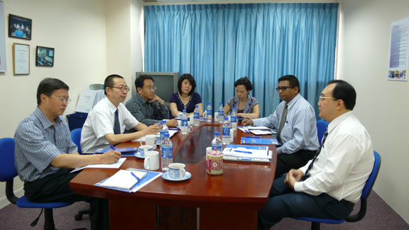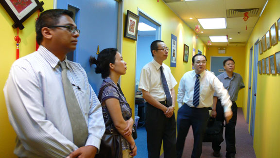 董占军、数字艺术与传媒学院院长王传东、图书馆副馆长彭冬梅、外事处郭睿和济南画院院长杜华一行六人到新加坡创新计算机学院考察访问。新加坡创新计算机学院院长吴文灿、学术负责人Tony Hugn先生、合作推广负责人Toe B Dason先生接待了代表团一行。院长吴文灿向代表团一行介绍了新加坡创新计算机学院的整体情况、专业特色以及与世界各国的合作情况,并陪同学校代表团考察了部分教学基础设施。