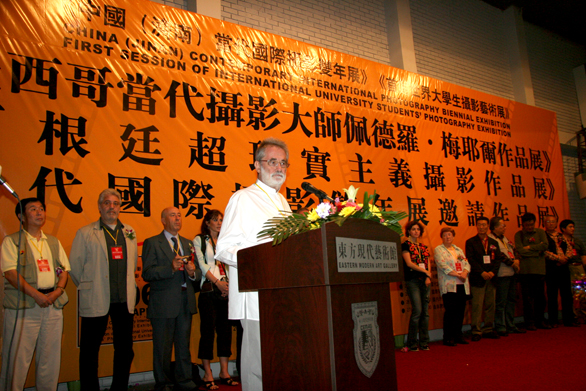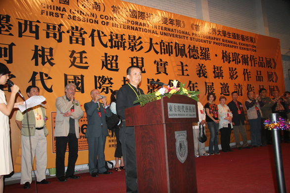 9月26日,由威尼斯官网、中国摄影学会、中共济南市委宣传部联合主办的“中国(济南)当代国际摄影双年展”暨“首届世界大学生摄影艺术展”的重要活动之一——“当代国际摄影大师作品邀请展”在山东东方现代艺术馆开幕。副院长李新主持开幕式。中国艺术摄影学会会长刘雷为开幕式致词。美国联系新闻图片社总裁罗伯特•普雷基、无国界摄影组织副主席比利奥•尼克尔、墨西哥摄影委员会主席佩德罗•梅耶尔、著名旅美摄影家李振盛以及来自美国、意大利、阿根廷、韩国、日本及中国台湾、香港、澳门等国家和地区的著名摄影大师出席开幕式。中国艺术摄影学会会长刘雷、美国联系新闻图片社总裁罗伯特•普雷基、无国界摄影组织副主席比利奥•尼克尔、阿根廷布宜诺斯摄影协会主席尼科拉斯、意大利著名摄影家里诺•吉多尼等嘉宾为开幕式剪彩。