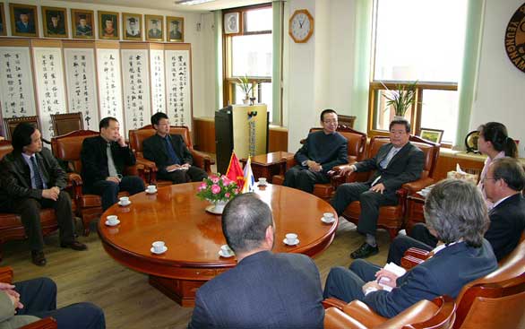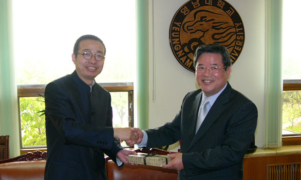 岭南大学校长禹东琪先生在校长会议室愉快地会见了