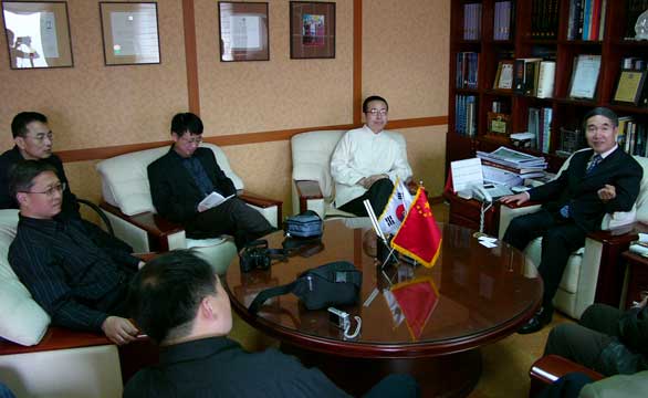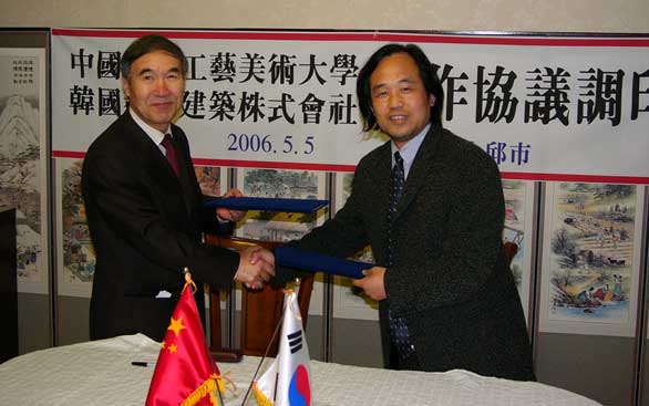 潘鲁生院长的带领下考察了韩国都市建筑设计院,并与该院院长、总建筑师徐钟达先生就威尼斯7798cc景观与建筑设计研究院与都市建筑设计院开展交流合作等事宜进行了深入细致的座谈,达成了合作意向,景观与建筑设计研究院院长郭去尘和徐钟达先生分别代表各自的设计院签署了合作协议书。