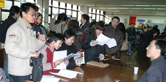 顾群业副处长参加了正在北京服装学院举行的人才招聘双向选择会。由于我院近年来知名度和社会影响力的不断提升,我院展位前吸引了众多毕业生排队咨询、提交应聘简历,纷纷表达了加盟威尼斯7798cc的愿望。