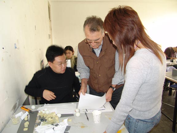 11月11日上午8:00,中国工业设计造型基础高级研修班进入第四天的教学进程,上午,雷曼教授对10日布置的ExerciseB进行了集体性演示讲评,表示对学员完成的设计作品感到非常满意,并对多位学没的设计创意表示赞赏。