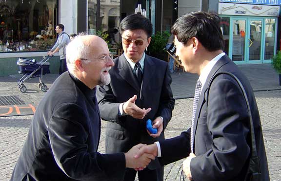 2004年10月24日于茂阳书记拜会了我院客座教授格林贝格先生,并进行了座谈。格林贝格先生带领考察组参观了他在市政厅的办公室,马克思曾生活和学习的场所。于书记与格林贝格先生进行广泛友好的会谈,他正在积极推动我院与德国院校之间的合作,并鼓励以后在研修生培养方面加强合作,以便利用德国政府有关的基金支持。他还提前安排了比勒菲尔德大学与考察组成员会面及参观考察事宜。格林贝格先生联系了一位美国洛杉矶著名设计师将在近期到我院访问讲学工作。午饭后,格林贝格先生带领考察组成员参观了他所主持的基金会办公室。考察组成员学院外事办康健副主任、教务处