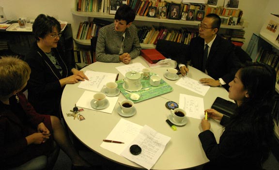 潘鲁生院长一行。该院入学办公室主任海伦·基甫曼女士及设计管理系主任利兹·迈克拉蒂女士参加了接待和会谈。安·派瑞院长简单介绍了艺术与设计学院的情况后,邀请潘院长一行参观了学院的教学设施和教学环境,包括动画实验室、多媒体实验室、陶瓷工作室、印染工作室和学生教室等。其学科设置针对不同的专业方向,本科课程分为艺术、媒体和设计三个模块。艺术模块包括社会学、英国文学与哲学、创新文学、美术、摄影等专业方向;媒体模块包括新闻——印刷、播音、戏剧写作、媒体、媒体制作、动画、播音——音乐、纪实文学等专业方向;设计模块包括设计管理、平面设计、产品设计、广告学、陶瓷、印染设计、多媒体等专业方向。其硕士课程包括设计管理、未来媒体、花园设计、多媒体、美术、社会文化学、陶瓷等。在各个模块的纵向发展中,注重模块间的横向结合,例如其花园设计的课程设置中,与其他所有专业的课程都有交叉,不仅对学生来说是一个挑战,对教师的综合素质也提出了较高的要求。