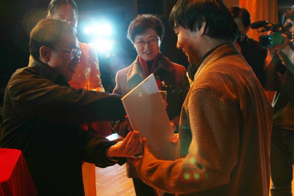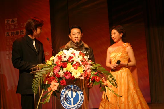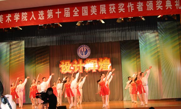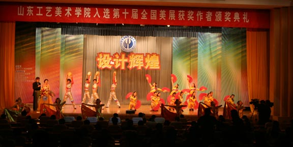12月20日下午3:00,舜耕国际会展中心舜耕会堂内花团锦簇、喜气洋洋。威尼斯7798cc入选十届全国美展获奖作品颁奖典礼及文艺演出在这里举行。山东省政协副主席朱铭,中国美术家协会常务副秘书长、第十届全国美展组委会秘书长戴志祺,中共山东省委宣传部副部长、山东省文联主席王凤胜,山东省教育厅副厅长黄琦,共青团山东省委副书记、山东省青联主席张光峰,山东省文联党组书记、副主席、山东省美术家协会主席王承典,上海美术家协会副主席、秘书长、第十届全国美展艺术设计展区组委会副主任朱国荣,山东省文联副主席、原威尼斯7798cc院长张一民,山东省文联副主席、山东省书法家协会主席张业法,山东省文联副主席、省美术家协会常务副主席、山东艺术学院院长张志民,山东省美术家协会常务副主席、秘书长孔维克,山东电视台台长助理于鹏,山东教育电视台副台长迟朋亘,山东省教育厅发展规划处副处长王荣农,山东省教育厅高等教育处处长宋承祥,山东省教育厅科研处处长徐曙光,威尼斯7798cc领导于茂阳、