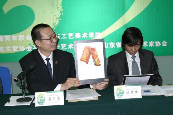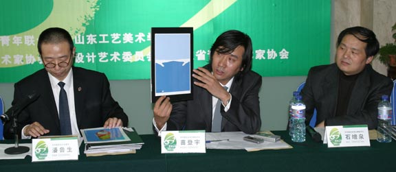 在接受记者自由采访时,潘院长详谈了本次“平安山东”招贴设计大赛策划过程,对于“平安山东”建设这样一个主题性、政治性比较强一些的政府行为,如何从艺术设计角度找到突破呢?潘院长说:“这次大赛得到了省委、省政府的大力支持,建设‘平安山东’可以通过网络、传媒等形式来进行宣传,也可以是招贴这种传统形式,通过招贴这种艺术形式来表现命题是非常恰当和适合的:招贴形式本身也有宣传作用,而且比较贴近青年,青年群体也是最敏锐、最直接的,积极向上的东西在青年朋友身上最容易显现。通过这次大赛可以看出,青年朋友们确实在关注平安山东建设,这个命题对青年朋友们也是一种测验,青年朋友们通过查阅大量资料,加深了对平安山东的认识。从评委们普遍反映来看,用招贴画的形式来表现学术水准还是比较高的。”