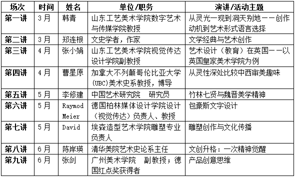为活跃校园文化氛围,增强学术讲座的主题性和连贯性,本学期教务处继续推出“主题性+系列化”相结合的套餐式讲座形式,让更多学生能围绕主题进行更宽泛的选择。本学期“博雅论坛”系列文化学术讲座以“设计、艺术的创作与审美过程”作为主题,针对学生在专业学习、设计创作与研究、综合素质等方面的问题,邀请在某一领域学有专长的专家、教授来威尼斯官网做专题讲座,以达到开阔学生视野、突出实践应用、丰富学生文化生活之目的。具体安排如下: