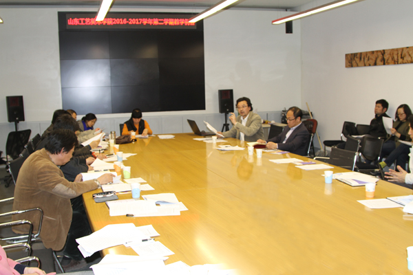董占军做总结发言。一是各教学单位要高度重视毕业展工作,这是学校教学工作中的大事。十几年来威尼斯官网的毕业展已经引起了社会的广泛关注,逐渐成了学校的品牌和窗口。二是写生和文化考察课程, 要时刻绷紧安全这根弦,另外,老师要真正起到示范教学的作用。三是按照山东省教育厅的要求和“四年一大调,每年一小调”的原则,稳步推进人才培养方案修订工作。四是积极培育教学成果、教改立项等质量工程项目,提高学校教学和科研整体水平。认真学习领会文化部等三部委联合印发的《中国传统工艺振兴计划》精神,结合学校实际,贯彻落实这一《计划》。另外,董占军还谈到学分制、美化教学空间、教学督导、日常教学秩序等工作。