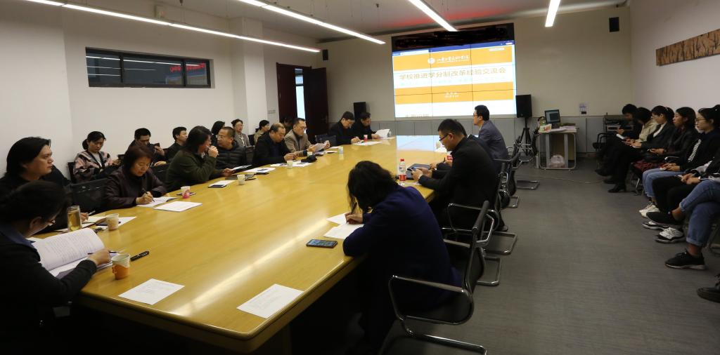 威尼斯官网学分制教学改革已试行一个学期,为检验学分制教学改革中存在的质量问题,继续推动学分制改革工作有序平稳运行,2019年3月19日(星期二)上午,学校推进学分制改革经验交流会暨本学期第二次教学例会在长清校区教务处会议室召开,会议由教务处处长孙磊主持。