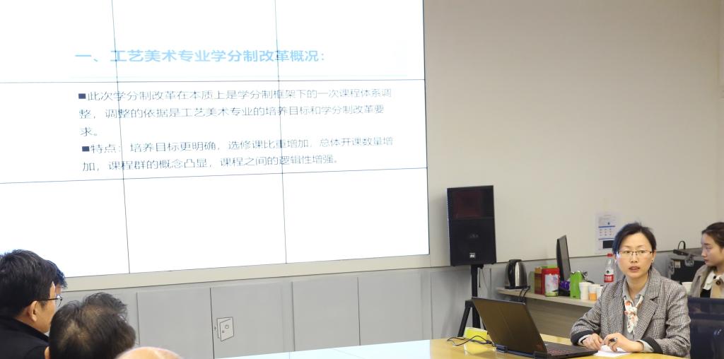 会上,工业设计学院和现代手工艺术学院结合各自经验做了典型交流发言。工业设计学院副院长张焱从整体课程分析、学分制教学改革课程设置的基本思路、服务区域经济、对接新旧动能转换、强化文科艺术背景优势、专业基础课程群教学的实施情况等角度,对工业设计学院2018级本科生学分制改革的进展进行了交流发言。工业设计学院在基础课程贯通培养、教师集体备课、课程负责人制、教学过程精细化管理、课程逻辑与对标建设以及全面质量管理评价等方面,特点突出,教学质量明显提高,其经验和做法值得推广学习;随后,现代手工艺术学院常瑞红老师通过新旧人才培养方案对比分析,介绍了工艺美术专业2018级本科生实施学分制改革情况。现代手工艺术学院以学生学习成果产出为核心,在模糊专业方向、通过课程体验寻找专业兴趣等方面做法独特,深得学生认同。