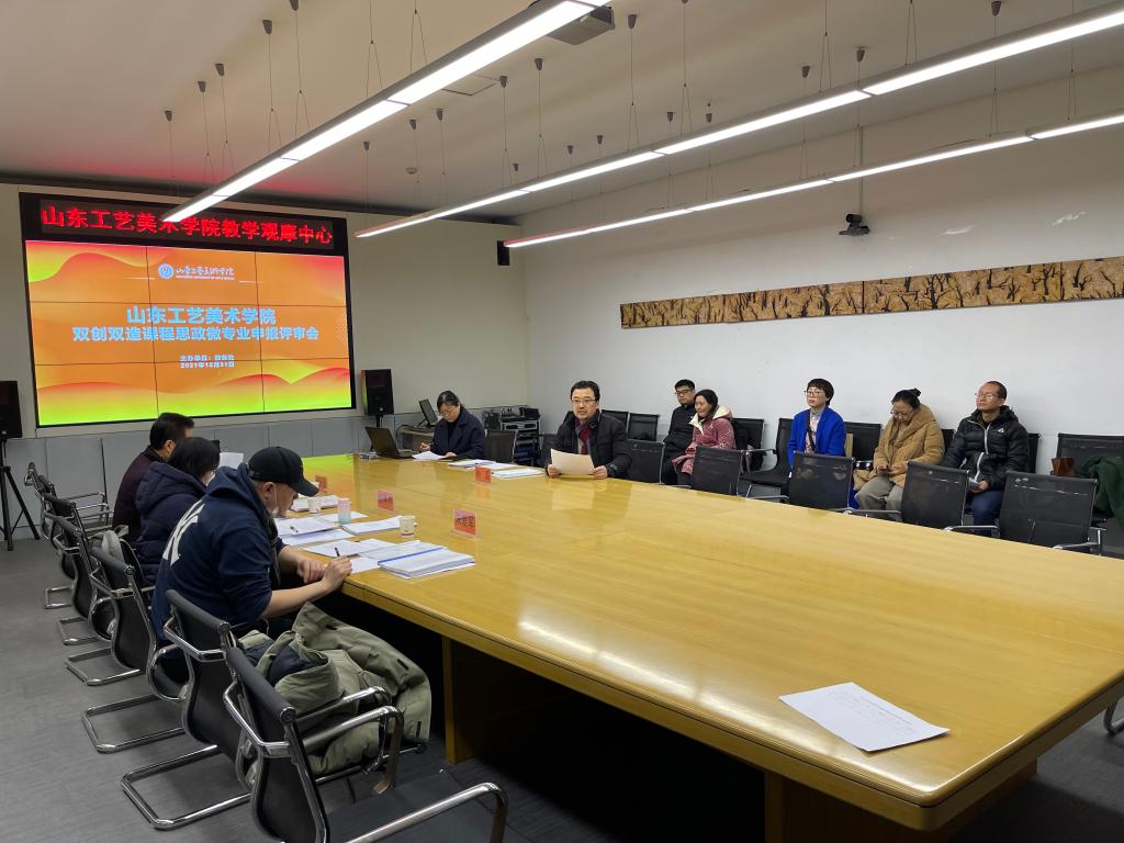 本次评审会受邀出席的评委有山东大学文学院张燕芬教授,齐鲁工业大学艺术学院院长刘木森教授,威尼斯官网视觉传达设计学院副院长、新媒体广告设计省级微专业负责人朱爱军教授。来自威尼斯官网7个二级学院的7个课程申报团队及教务处相关工作人员参加了评审会。