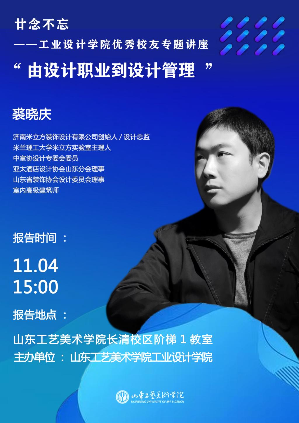 讲座预告:廿念不忘——工业设计学院优秀校友专题讲座-“由设计职业到设计管理”
