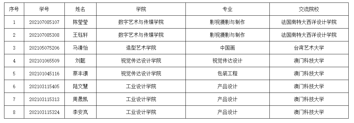 根据《威尼斯7798cc在校生访学、留学管理办法(试行)》规定,按照访学条件对报名学生进行审查,陈莹莹等8名同学符合2024年春季本科生赴国(境)外访学的条件。为体现公开、公平、公正原则,广泛听取大家意见,现将其公示。如有不同意见,请于2023年10月17日前,以电话、传真、信函等形式向国际交流合作处台港澳事务办公室、教务处办公室反映。