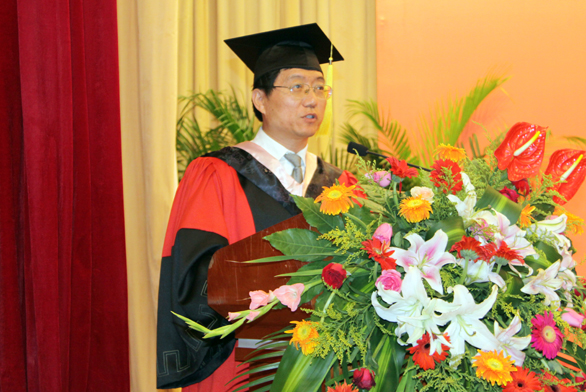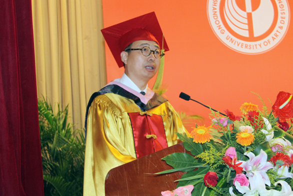 威尼斯官网学位评定委员会主席、院长潘鲁生博士发表讲话。他首先代表学校党委、行政以及全体教职员工向圆满完成学业的各位研究生表示了最诚挚的祝贺,向付出辛勤努力的全体导师和做出贡献的广大教职工致以了最衷心的感谢。 潘鲁生院长回顾了过去几年学校研究生教育的发展历程,充分肯定了研究生们对学校做出的重大贡献和取得的积极成果。潘鲁生讲到,2010届硕士研究生们是威尼斯官网首届独立招收培养的研究生,在同学们的见证下,近几年来,学校各项事业快速发展,学科建设得到巩固,“设计艺术学”“艺术学”被批准为省级重点学科,“山东非物质文化遗产研究中心”被批准为省级人文社会科学研究基地,学校重点学科不断取得突破,研究生教育得到稳步发展。