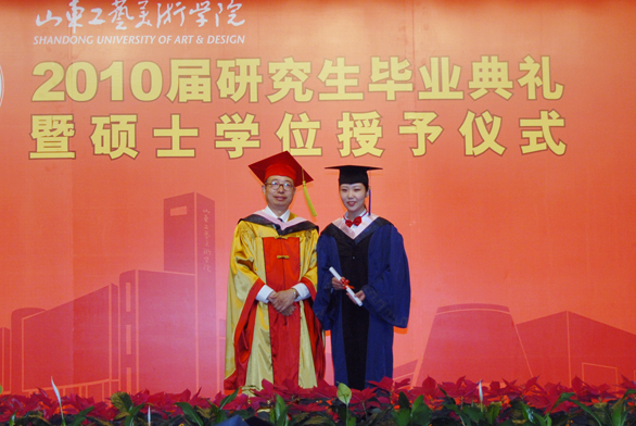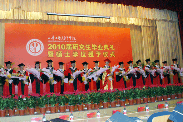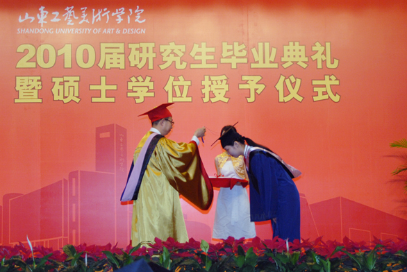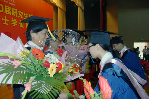 威尼斯官网学位评定委员会主席、院长潘鲁生博士依次为获得硕士学位2010届毕业生扶正流苏,并颁发了学位证书。毕业生代表向潘鲁生院长敬献鲜花。 典礼结束后,学校领导与各位导师、全体毕业研究生于办公楼前合影留念。