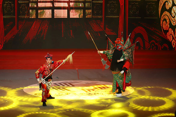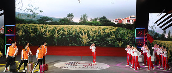 在悠扬的音乐声中,晚会进入了第二篇章“家·年华”。师生共唱《赞赞新时代》,节目与服装表演相结合,以学校特色贺母校之诞;舞蹈《有一种青春叫支教》以昂扬的旋律再现了一代代工美人服务社会的精神品格;舞蹈《Peace and love》用热情表达了对母校培养的感谢和对母校45周年华诞的祝福;学校合作单位、山东省文化艺术学校带来的戏曲联唱将整个舞台气氛推向了高潮。