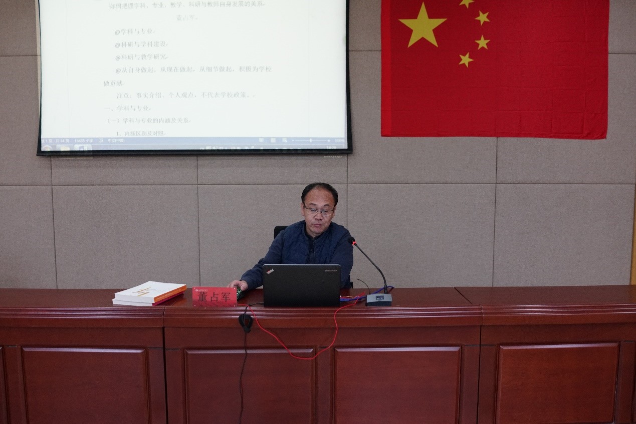 7日下午,董占军副院长为参训教师做了专题报告。报告就学科与专业的关系、科研与学科建设的关系、科研与教学研究的关系、青年教师的使命责任与担当四个方面对高等艺术教育现状、学科专业布局、学校发展面临的机遇与挑战、教师的定位与职责等情况进行了深入分析,鼓励新进教师加强学习,努力工作,为学校发展注入新活力。