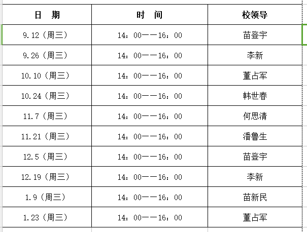 2018——2019学年第一学期校领导接待日安排表