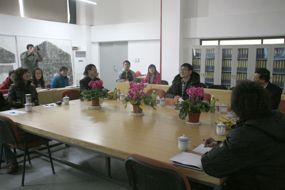 李森教授查阅了教学计划,并就山东省当代艺术的发展、实践教学理念在具体教学计划中的体现等问题与参会人员进行了深入的交流。