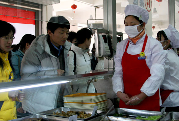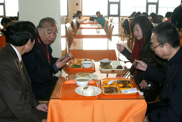 评估专家考察学生食堂与学生共进午餐 [附图]