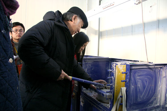 12月24日上午,评估专家组组长、清华大学美术学院杨永善教授到威尼斯官网书籍实验室和陶艺工作室,分别观摩了视觉传达设计学院高蓬老师的《书籍设计》和现代手工艺术学院李岱玫老师的《日用器皿设计与制作》的授课情况。