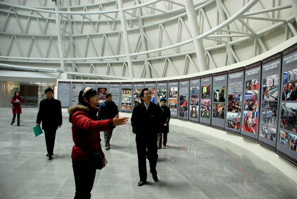 在美术馆和博物馆,刁在祥副院长听取了相关人员的工作汇报,重点检查了馆内各项展览的布展情况,进一步论证并规划考察路线,适时提出现场考察解说词的修改意见,明确各展室负责讲解的专门人员,并就周围环境建设提出整改方案。