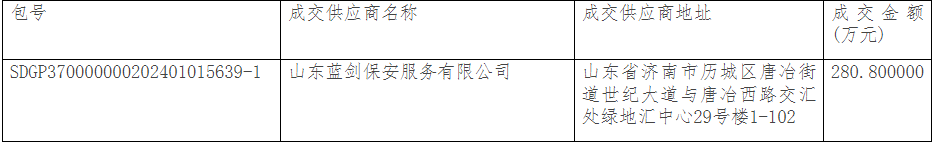 竞争性磋商:未成交供应商的未成交原因: 1:山东先锋安保服务有限公司(符合性评审废标);山东众安安防服务有限公司(综合评审得分较低);山东贵安安保集团有限公司(符合性评审废标);山东振邦保安服务有限责任公司(综合评审得分较低);济南军盾保安服务有限公司(资审评审废标);