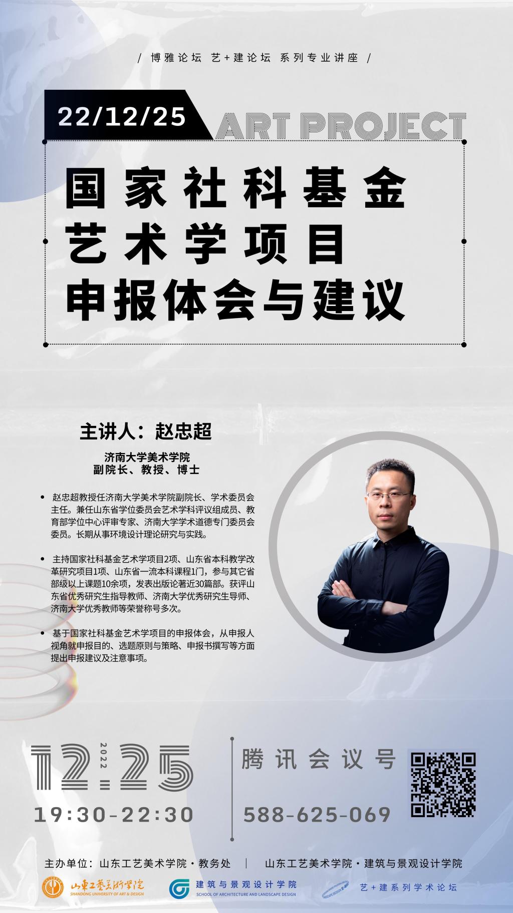 赵忠超,教授,博士,济南大学美术学院副院长、学术委员会主任。兼任山东省学位委员会艺术学科评议组成员、教育部学位中心评审专家、济南大学学术道德专门委员会委员。长期从事环境设计理论研究与实践。