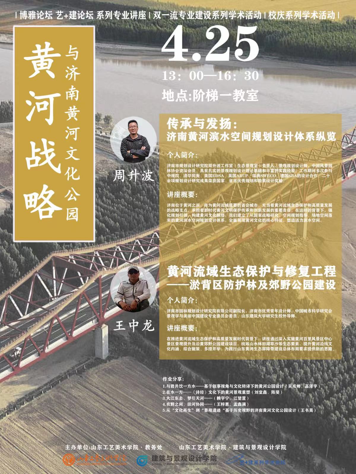 在推进黄河流域生态保护和高质量发展时代背景下,讲座通过深入实施黄河百里风景区中心景区景观提升及沿黄郊野公园建设项目,统筹山水林田湖草沙等生态要素,提升黄河沿线文化内涵、综合施策、多措并举。为践行山东黄河生态屏障带建设总体布局要求提供新的思路。